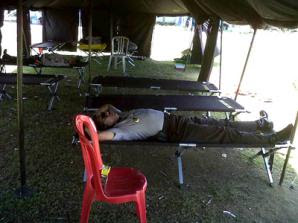 Samai-sampai beberapa anggota polisi yang menjalankan tugas malam pun harus tidur di tenda-tenda yang didirikan di halaman asrama haji, karena harus tetap siaga sampai kegiatan selesai.(sedikit ngutip aya sugianto)